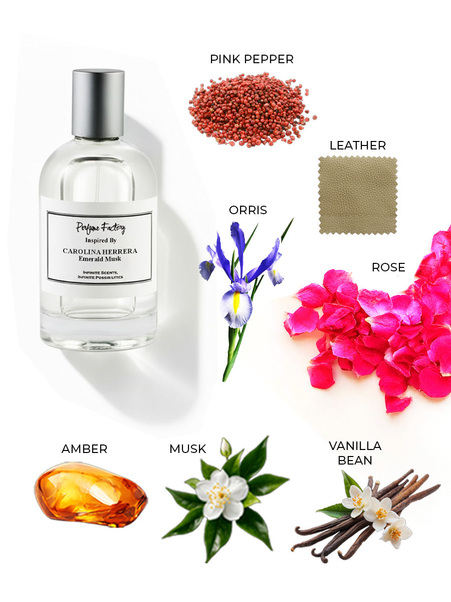 A striking leather scent softened by aromatic accords, creating a bold fragrance with a modern edge.